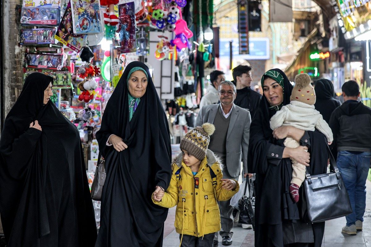 أشخاص يمشون في السوق القديمة بمدينة شهر راي جنوب طهران (8 ك2 2024، أ ف ب).