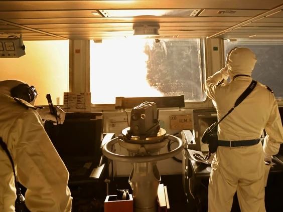 صورة من وزارة الدفاع البريطانية لعسكريين يراقبان إطلاق صواريخ على اليمن.