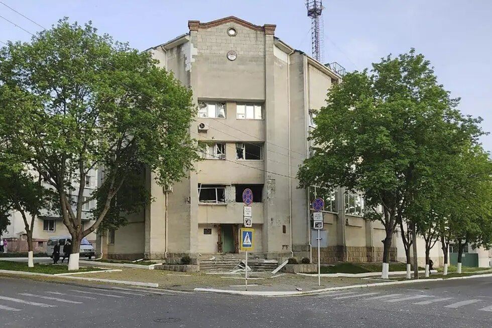 صورة ارشيفية- مبنى متضرر تابع لوزارة أمن الدولة في تيراسبول، عاصمة منطقة ترانسنيستريا الانفصالية، في مولدافيا (25 نيسان 2022، أ ب).
