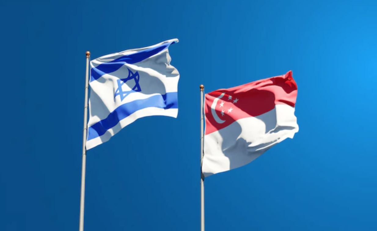 علم سنغافورة إلى جانب العلم الإسرائيلي.