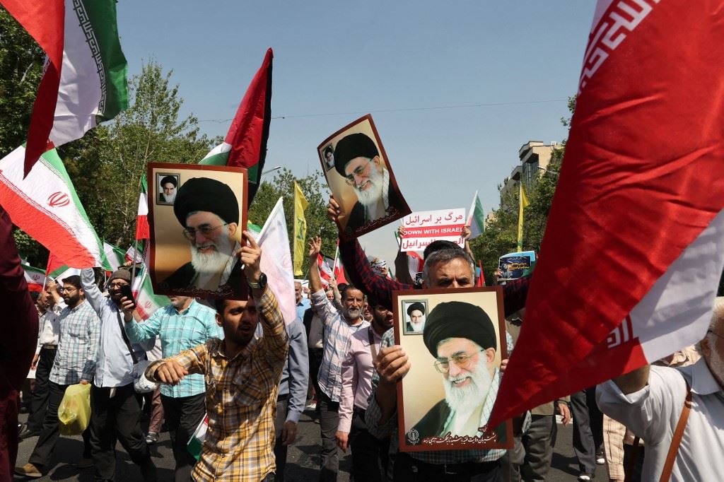 تظاهرة مناهضة لإسرائيل بعد صلاة ظهر الجمعة في طهران (19 نيسان 2024، أ ف ب).