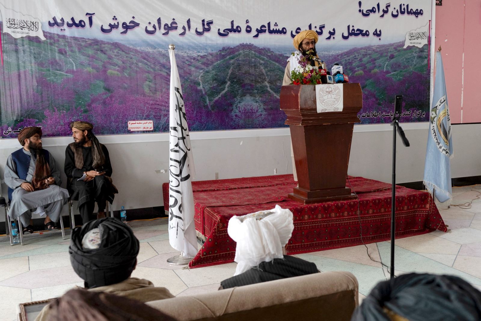 يتلو شعراء من طالبان قصائد أمام حشد كبير من المؤيدين أصلاً للحركة، يمتدحون فيها حكّام أفغانستان الذين استعادوا السلطة في كابول عام 2021.