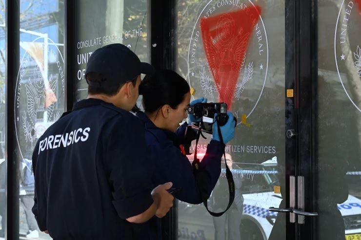 رسوم غرافيتي داعمة لغزّة على مبنى القنصلية الأميركية في سيدني... رئيس الوزراء الأوسترالي يُندّد