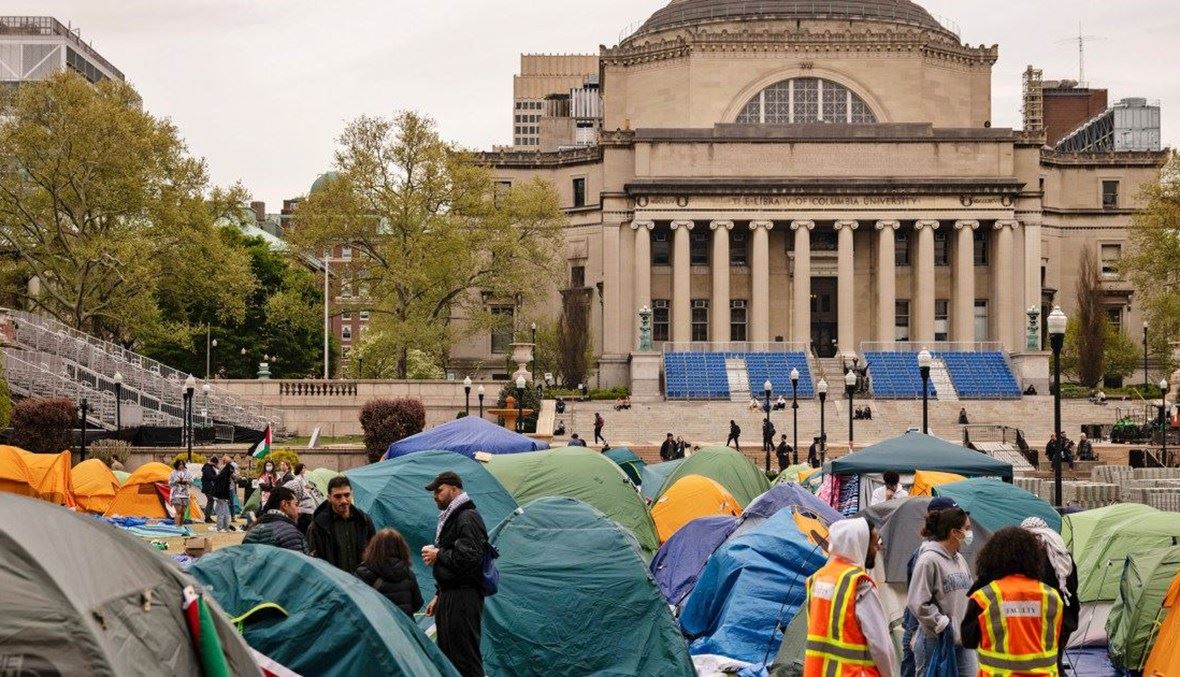 المخيم الطالبي الداعم لغزّة في حرم جامعة كولومبيا (أ ف ب).