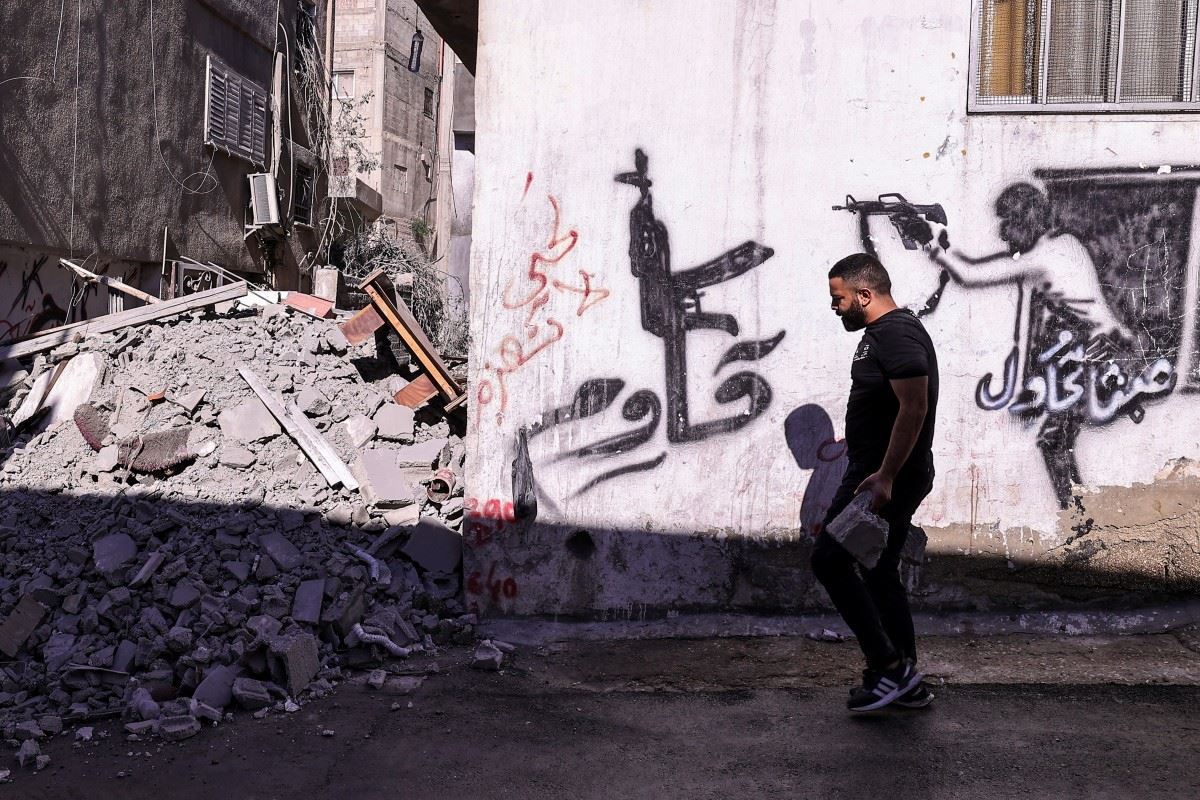 أنقاض منزل الفلسطيني محمد مناصرة، الذي اتّهمته إسرائيل بقتل مستوطنين إسرائيليين، بعد تدميره في مخيم قلنديا بالقرب من رام الله (أ ف ب).