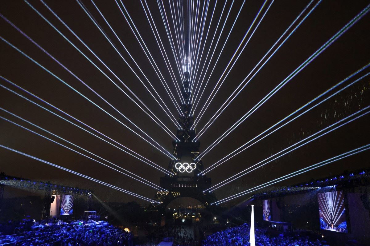 اضواء عند برج إيفل خلال افتتاح دورة الألعاب الأولمبية 2024 في باريس (26 تموز 2024، أ ف ب).