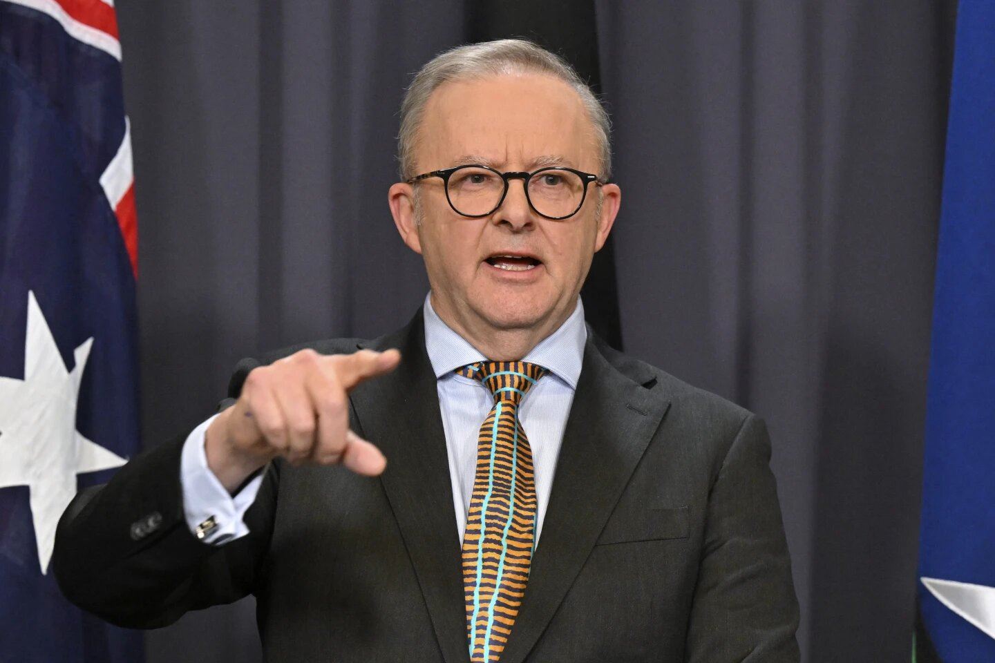 صورة ارشيفية- ألبانيزي متكلما خلال مؤتمر صحافي في مبنى البرلمان في كانبيرا (11 حزيران 2024- أ ب).