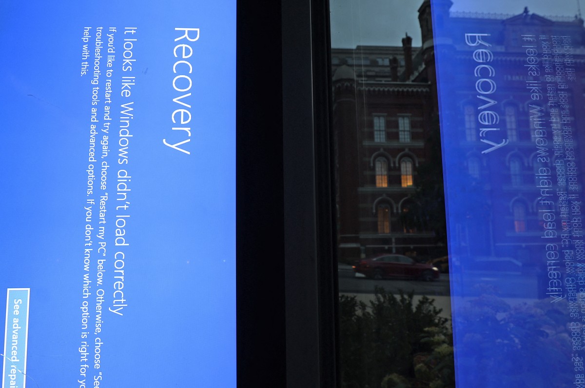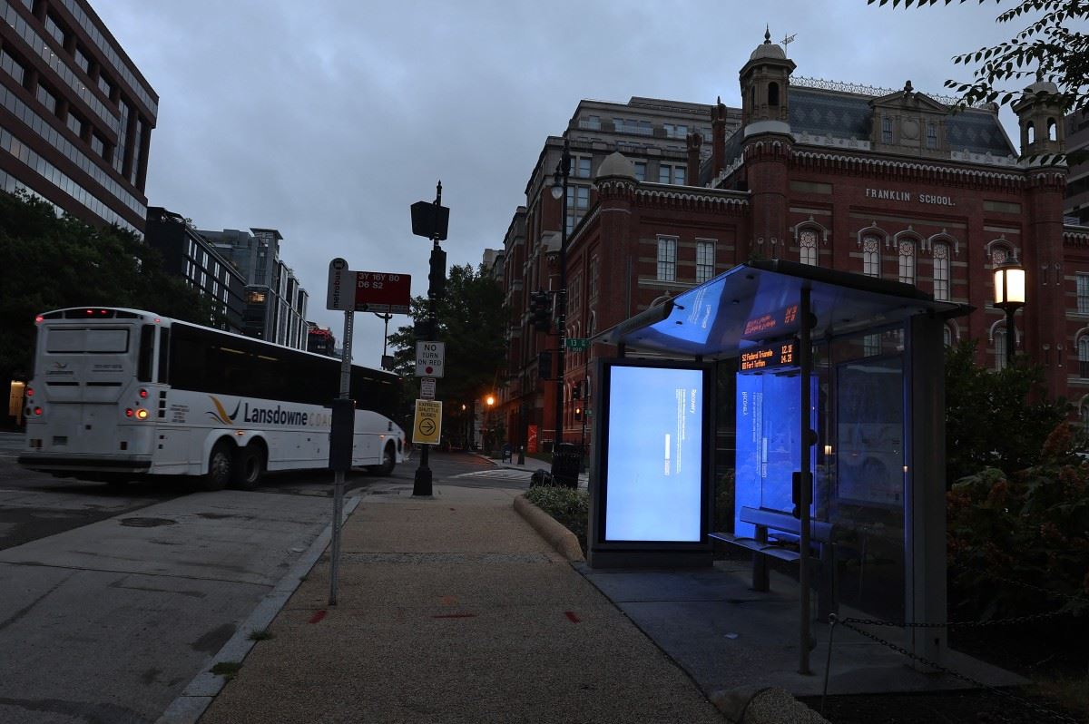 شاشة زرقاء في أحد شوارع واشنطن (أ ف ب).