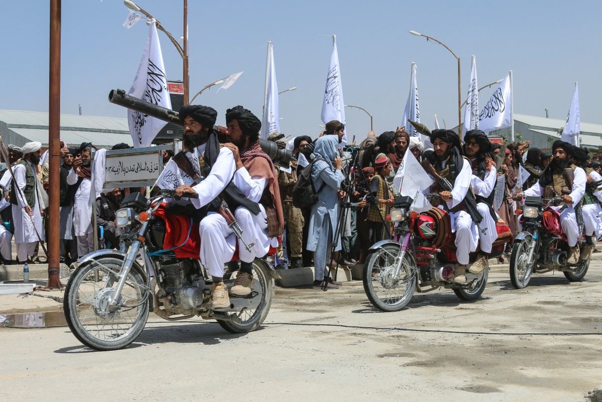 عسكريون من طالبان يركبون دراجات نارية خلال عرض عسكري في غزنة احتفالا بالذكرى الثالثة لسيطرة طالبان على أفغانستان (14 آب 2024، أ ف ب).