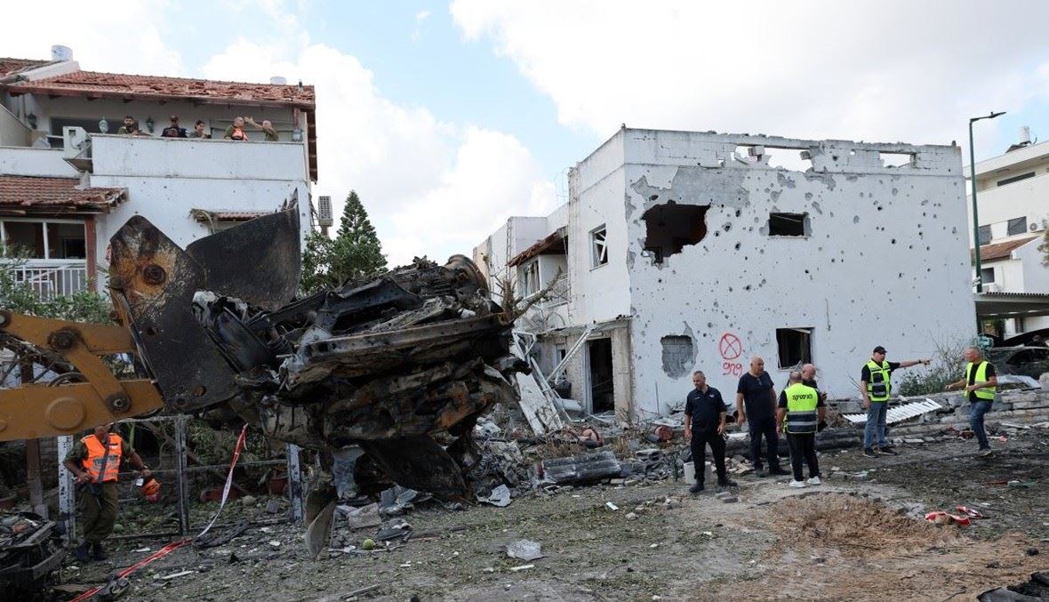 أضرار في موقع هجوم شنه حزب الله في كريات بياليك بمنطقة حيفا بإسرائيل (22 أيلول 2024، أ ف ب).
