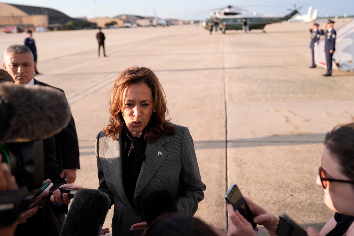 هاريس مصرحة لدى وصولها إلى قاعدة أندروز الجوية بولاية ماريلاند (22 ايلول 2024، أ ف ب).