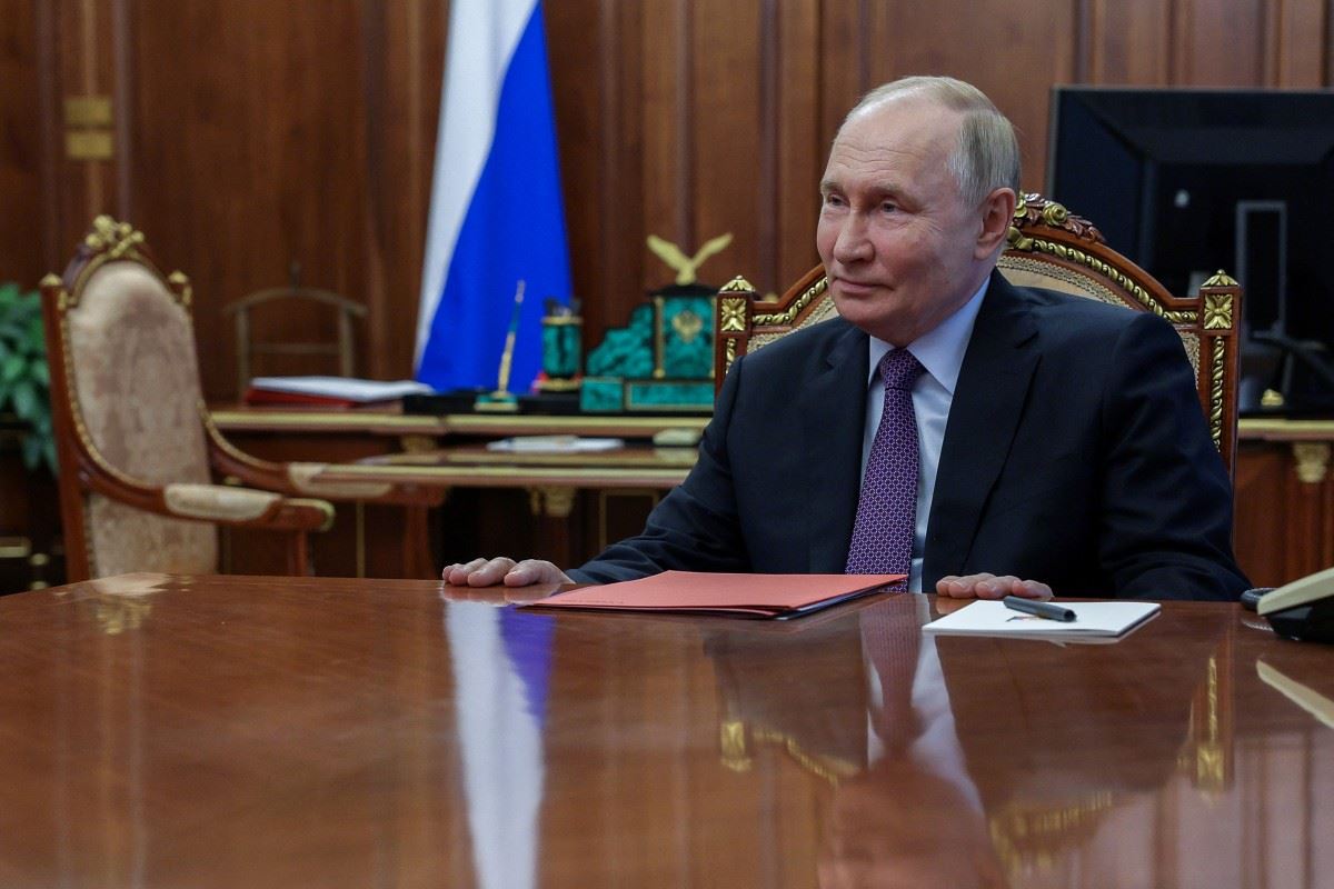 بوتين خلال لقائه الرئيس التنفيذي لمصرف سبير الروسي في موسكو (24 ايلول 2024، أ ف ب).
