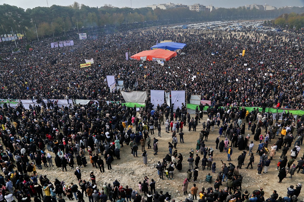 إلّا أنّ التجمّع الذي أقيم الجمعة، وبثّ التلفزيون الرسميّ الإيرانيّ لقطات مباشرة منه، كان الأكبر حتى الآن.