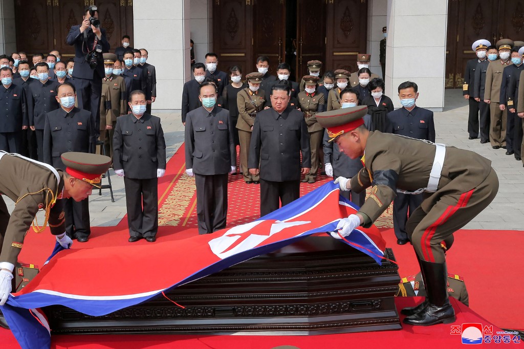 ونشرت وكالة الأنباء المركزية الكورية الشمالية الرسمية صورا لكيم بدون كمامة وهو يشارك في حمل نعش هيون الذي توفي عن عمر عن يناهز 87 عاماً.