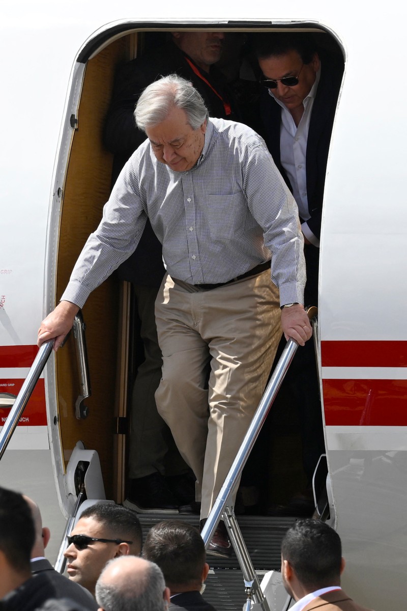 ووصل غوتيريس إلى مدينة العريش المصرية من حيث يتوجه إلى الحدود المغلقة مع رفح، حث يتوقع أن يكرّر "دعوته لوقف إطلاق النار لأسباب إنسانية"، بعد خمسة أشهر ونصف من حرب مدمّرة تسببت بأزمة إنسانية كارثية، وفق الأمم المتحدة.