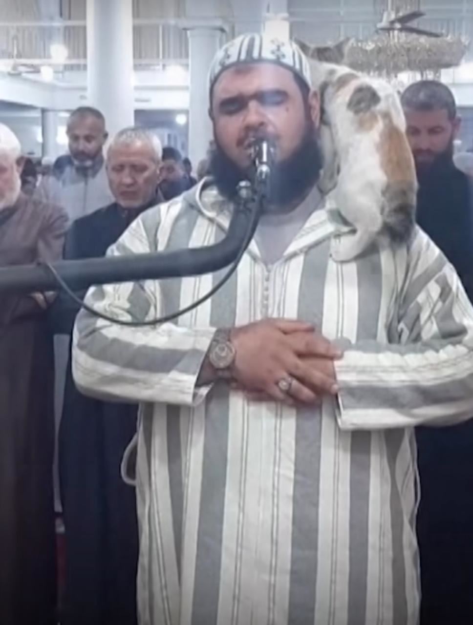 وقفزت القطّة على الشيخ وليد مهساس، في الجزائر، أثناء أداء صلاة التراويح.