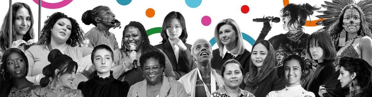 من بينهنّ ظاهرة الموسيقى العالمية بيلي إيليش، والسيدة الأوكرانية الأولى أولينا زيلينسكا، والممثلتان بريانكا تشوبرا جوناس وسيلما بلير، والمتسلّقة الإيرانيّة إلناز ريكابي، والرياضيّة المحطّمة للأرقام القياسيّة في الوثب الثلاثي يوليمار روخاس.