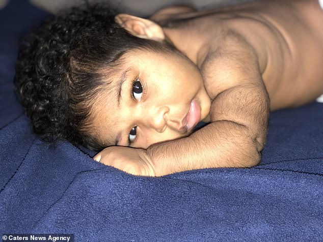 وفي التفاصيل، قالت كيونا جامبس من ولاية تكساس الأميركية إن ابنتها ميلا ولدت بشعر كثيف للغاية على رأسها وسرعان ما نما على ذراعيها وساقيها. كما ظهر لاحقاً لديها سالفان سوداوان.