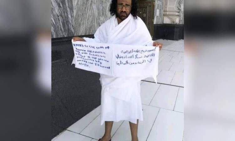القبض على مقيم من الجنسية " اليمنية " بعد ظهورة بلافته في الحرم المكي كتب عليها (العمرة لروح الملكة إليزابيث) pic.twitter.com/pCPby4J9um