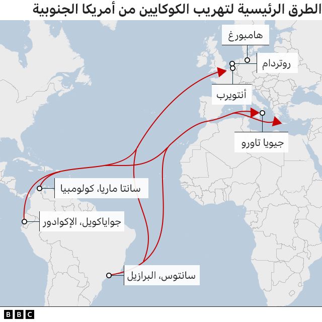 ويمرّ معظم الكوكايين عبر غويا تاورو، ميناء الحاويات الأكثر ازدحاما في إيطاليا، وهو منشأة ضخمة في جنوب كالابريا. جزء بسيط من الكوكايين مخصص للسوق الإيطالية، والباقي يمر شرقاً إلى البلقان والبحر الأسود.