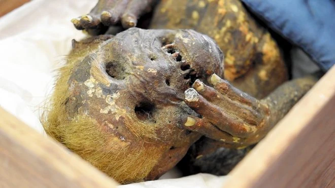 وخلصت الدراسة على أن النصف السفلي من المومياء هو سمكة، ولكن الجزء العلوي من الجسم مصنوع من القماش والقطن والورق مع استخدام جلد السمكة لنفخ الذراعين والكتفين والرقبة والخدين.