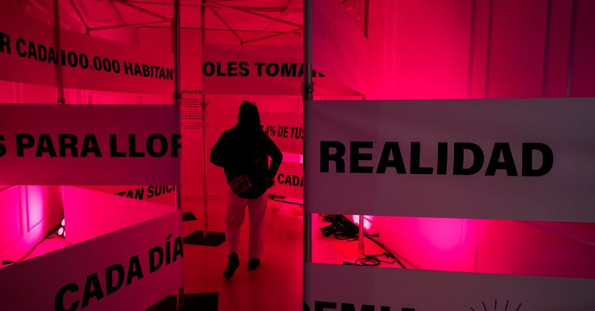 تدعو لافتة معلّقة على غرفة في إسبانيا من يدخلها لإطلاق العنان لدموعه إذ كتب عليها "أدخل وابكِ"، في حين كُتب على أخرى "أنا أيضا أعاني من القلق".