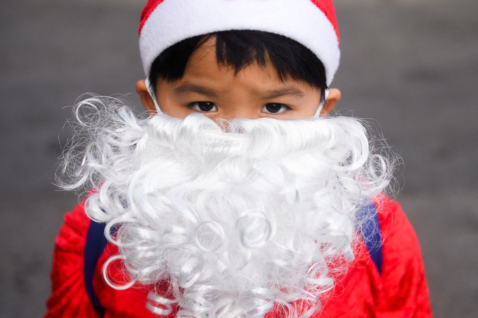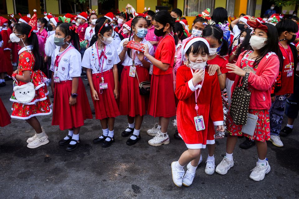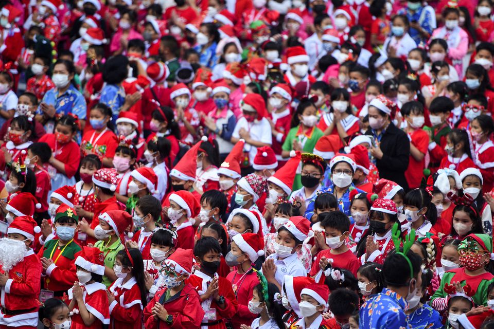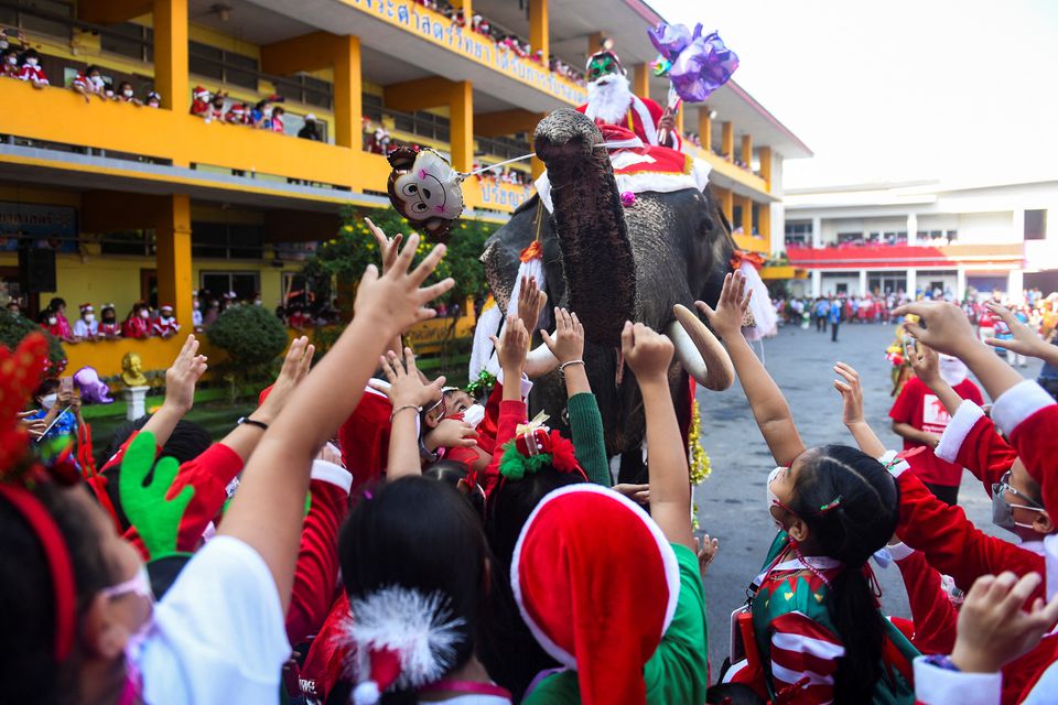 ارتدى راكبو الأفيال زيّ "بابا نويل"، وقادوا الحيوانات العملاقة إلى مدرسة في وسط تايلاند، لتوزيع هدايا عيد الميلاد على نحو ألفَي طالب، هذا الأسبوع، وهو جزء من تقليد سنويّ متّبع في البلاد.