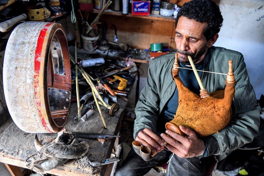 تصدح أنغام آلة "المِزْوٍدْ" الموسيقية التونسية التقليدية من ورشة في شمال العاصمة يديرها الخمسيني خالد بن خميس الساعي إلى تطويعها لتنسجم مع إيقاعات موسيقى "الراب" و"الجاز".