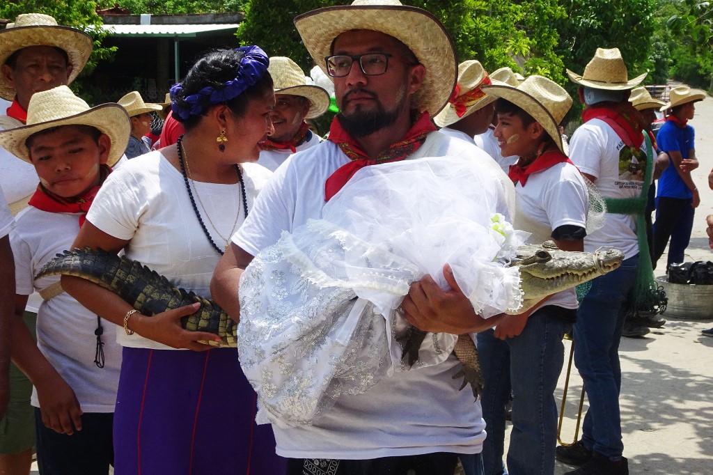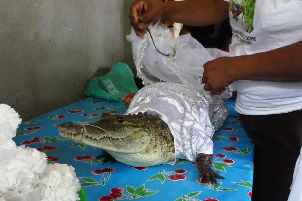 وتزوج عمدة سان بيدرو هواميلولا فيكتور هوغو سوسا من التمساح كجزء من طقوس السكان الأصليين القديمة لجلب الوفرة والحظ إلى القرية في جنوب غربي المكسيك.