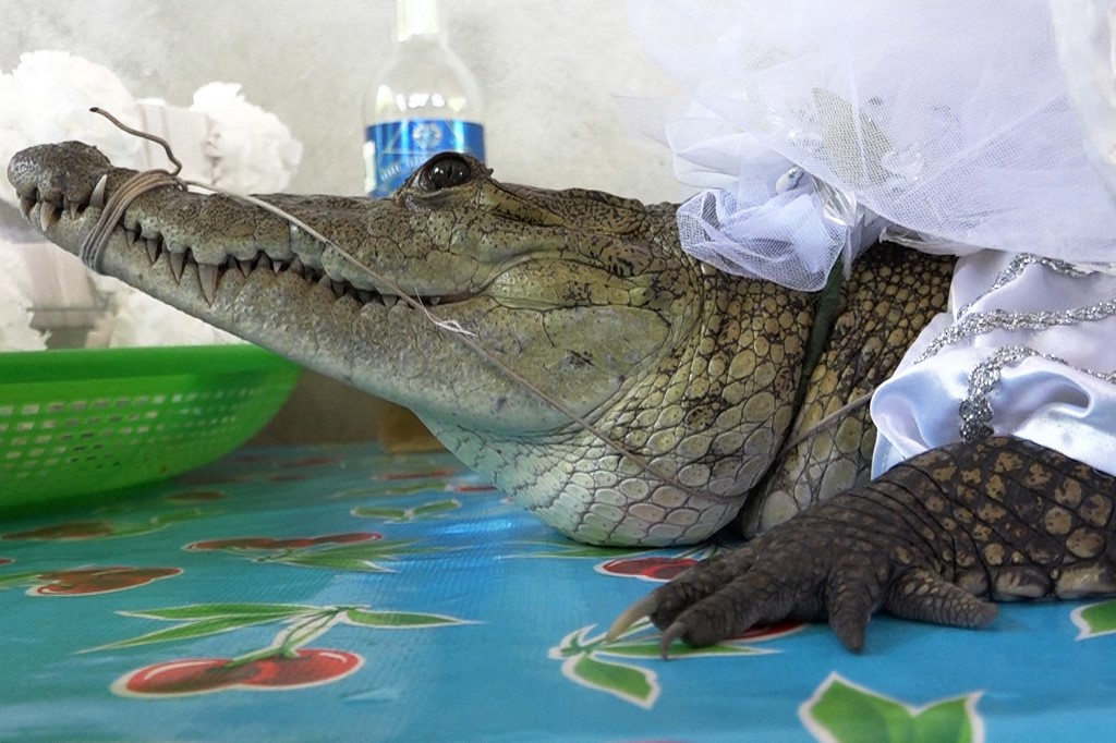 زواج في المكسيك من تمساح. (أ ف ب)