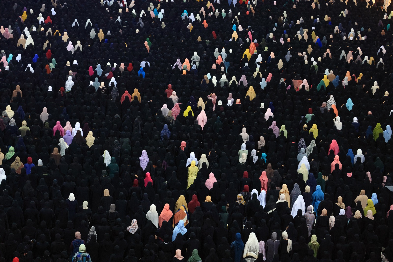 6- مسلمون يصلّون في مسجد الشيخ زايد الكبير في أبو ظبي في 17 نيسان 2023 خلال ليلة القدر، وهي إحدى أقدس الليالي خلال شهر رمضان المبارك. (تصوير كريم صاحب/ أ ف ب).