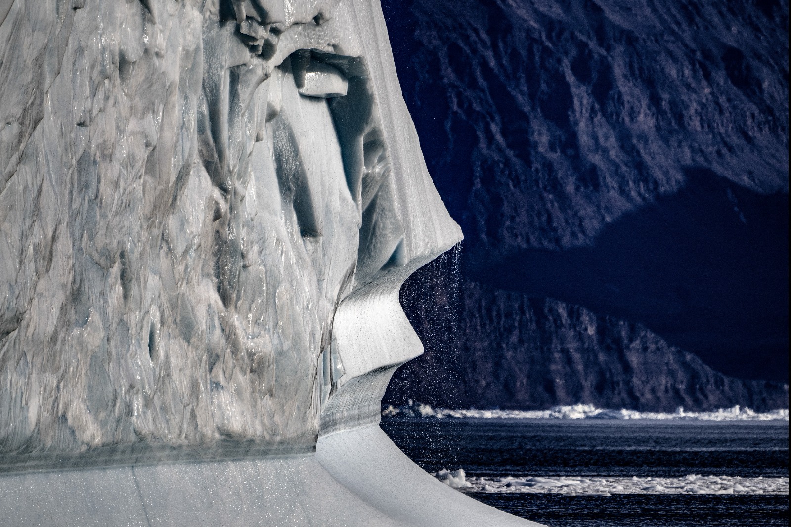 11-تُظهر الصورة التي التُقطت في 16 آب 2023، جبلاً جليدياً يذوب بسبب درجات الحرارة الدافئة التي تنجرف على طول مضيق سكورسبي ساوند، في شرق جرينلاند. يقوم المركز الوطني الفرنسي للبحث العلمي برحلة استكشافية لاستكشاف المضايق المعزولة في جرينلاند، وهي أكبر نظام مضايق على كوكب الأرض، والذي لا يزال غير مدروس إلى حد كبير. (تصوير أوليفييه مورين / أ ف ب).