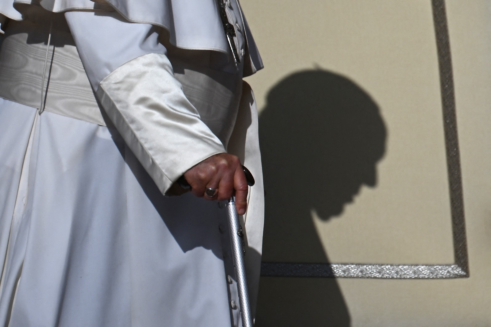 15- ظل البابا فرانسيس عند وصوله للجمهور العام الأسبوعي في 27 أيلول 2023 في ساحة القديس بطرس في الفاتيكان. (تصوير فيليبو مونتيفورتي/ أ ف ب).