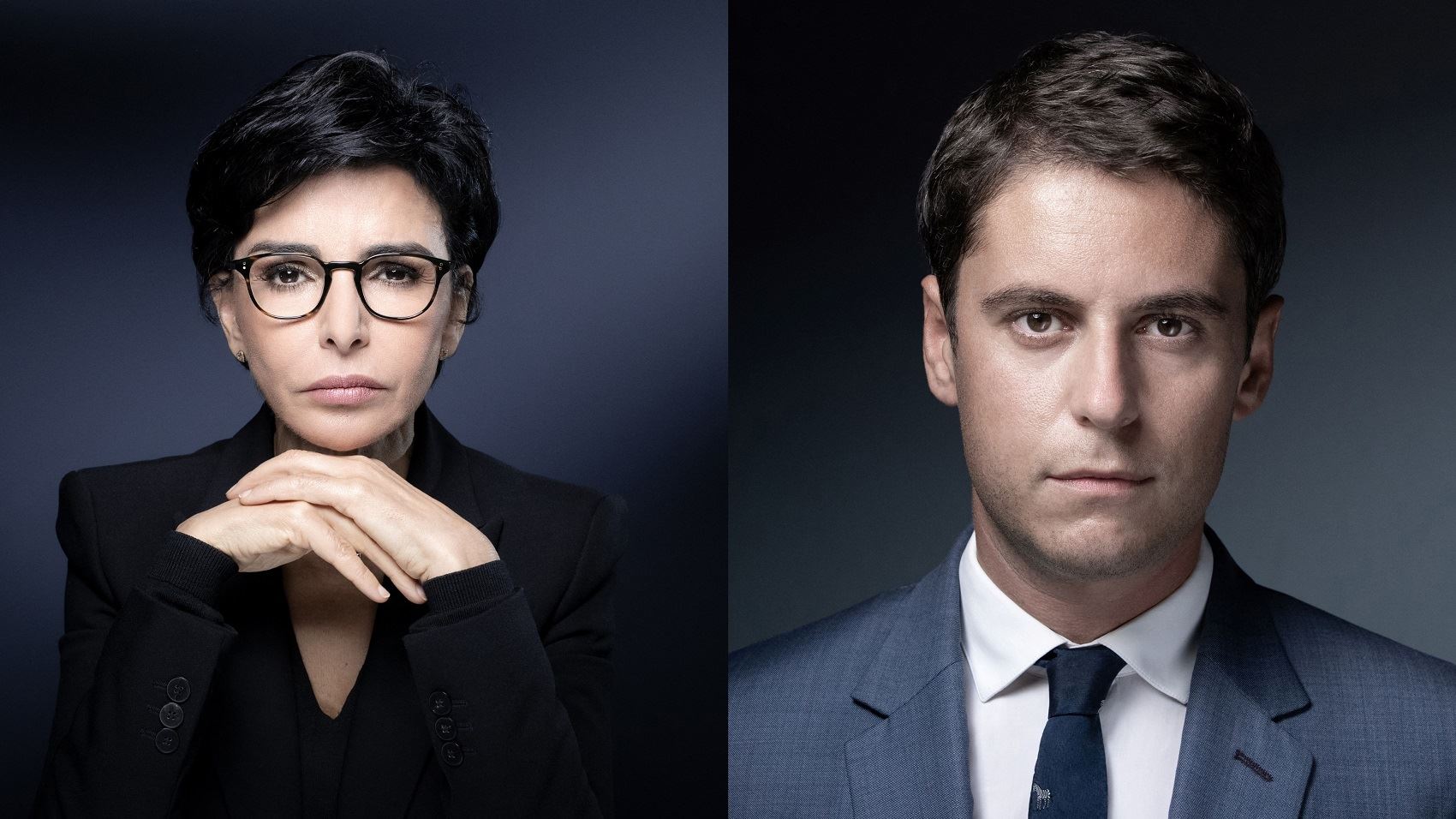 رئيس الحكومة غبريال أتال ووزيرة الثقافة رشيدة داتي (أ ف ب).