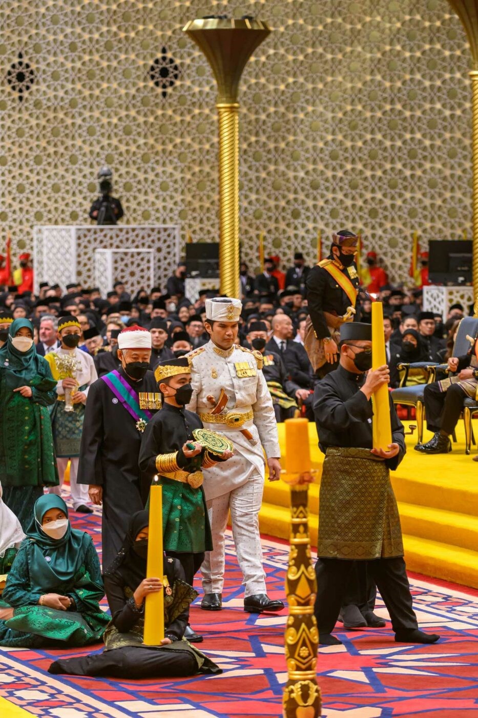 بعدها يتم إبلاغ أحد كبار الشخصيات بأن حفل الزفاف يمكن أن يبدأ. لا يتم ذلك إلى أن يصل الخبر الى سلطان بروناي، الذي يسمح بدوره بانطلاق المراسم من خلال سماحه للعروس بالدخول.