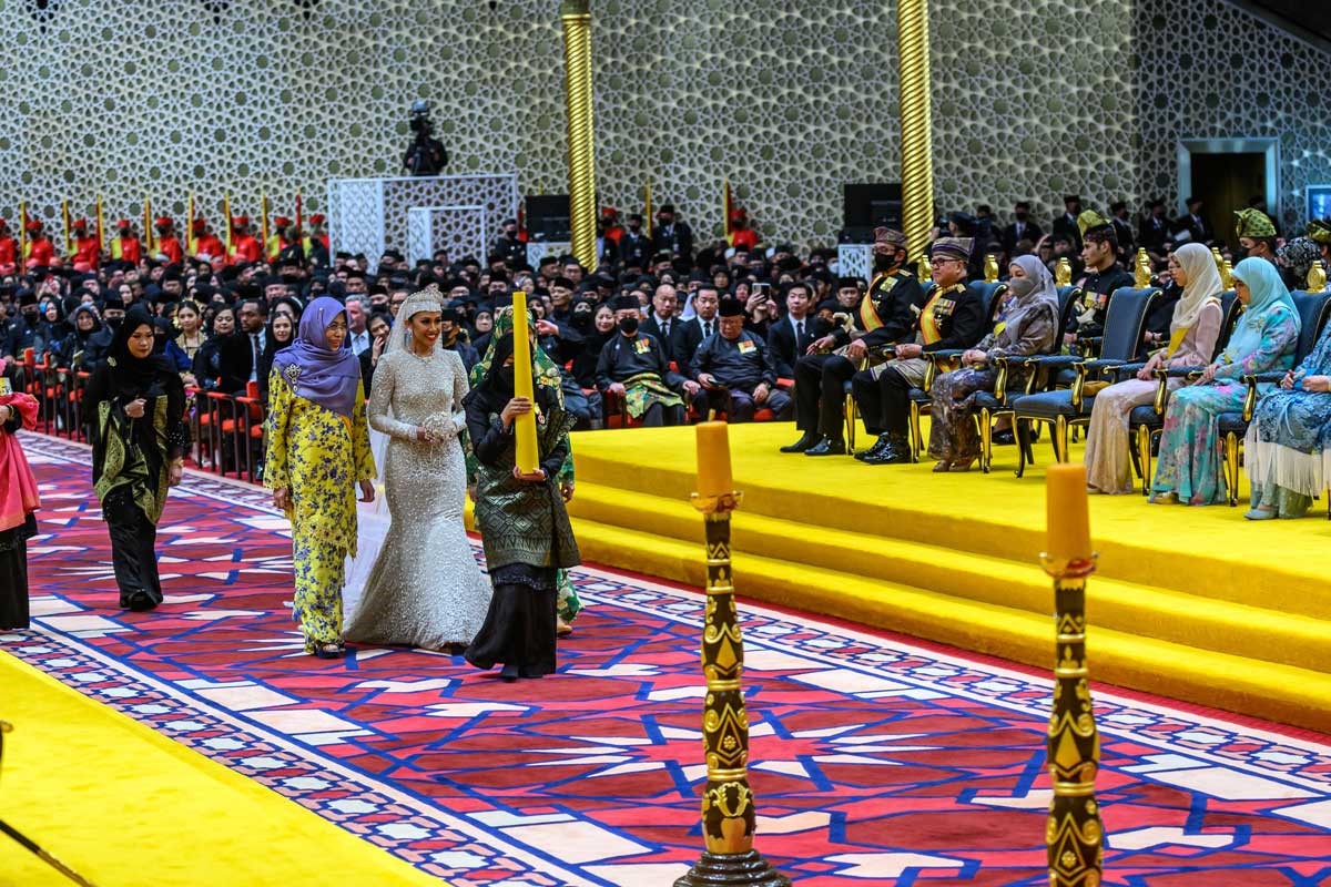 لنعش معاً لحظات حفل الزفاف التقليدي في المقر الرسمي لسلطان بروناي، الذي حضره كل من ولي عهد المعتدي بالله، الابن الأكبر للسلطان والأخ غير الشقيق للعروس وأعمام العروس وأبناء عمومتها وأفراد من عائلة باهانج المالكة وعائلة جوهور المالكة. تحكم هاتان العائلتان السلطنات في ماليزيا.