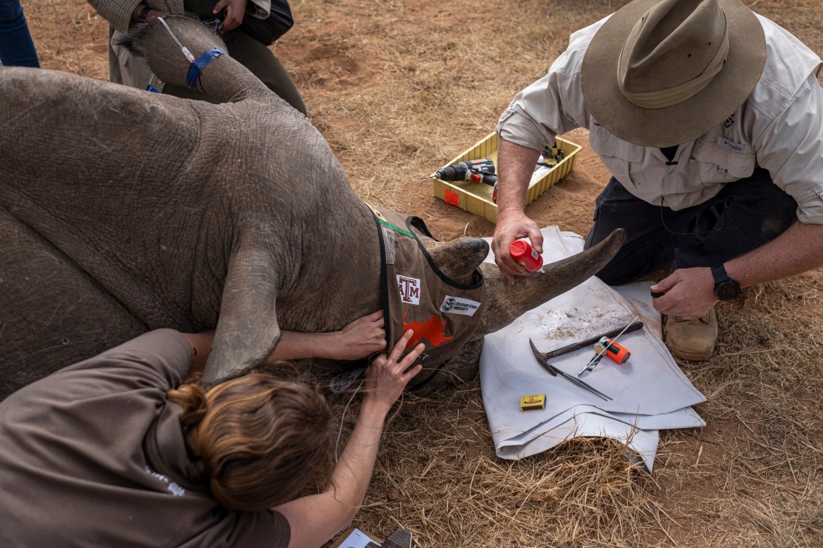 يحقن علماء من جنوب إفريقيا بمواد مشعّة قرون مجموعة حيّة من حيوانات وحيد القرن، لجعلها عديمة الفائدة وقابلة للرصد بصورة أكبر عند الحدود، وللحدّ من صيدها الذي يدمّر أعداد هذا النوع المحمي.