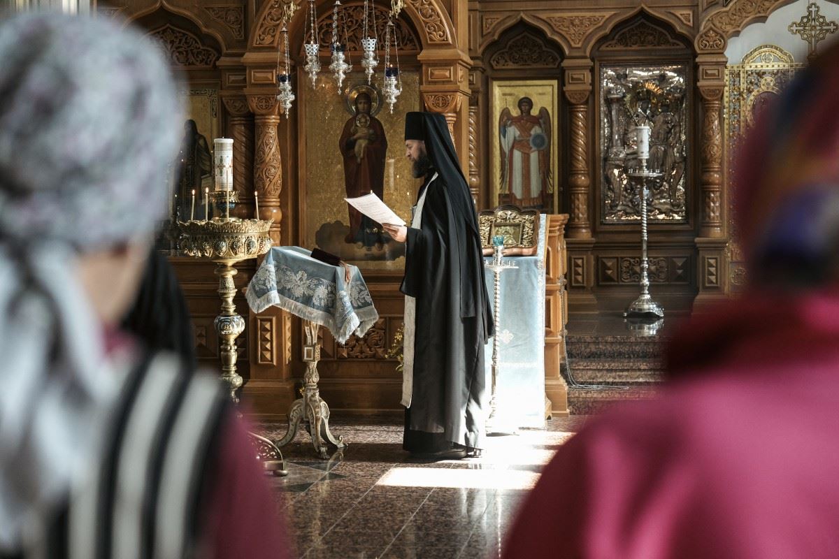 الأرشمندريت ميخائيل يحتفل بالقداس في دير فالامو في أووسي فالامو بالقرب من هينافيسي في جنوب شرق فنلندا (14 آب 2024، أ ف ب).