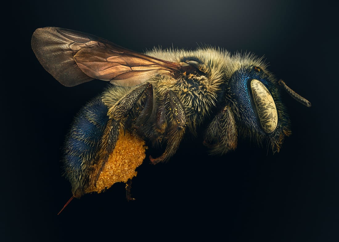 وأمضى بيس عامين في تصوير الحشرات، والتقط كلّ التّفاصيل غير العادية من خيوط الشّعر إلى الانعكاس على الجناح. تمّ إنشاء كلّ صورة فردية من أكثر من 10000 صورة تمّ التقاطها باستخدام جهاز مخصّص وعدسات مجهريّة، ثمّ تم تجميعها معاً، ممّا ينتج منه لقطة واحدة مركّزة تماماً، وتحتوي على تفاصيل دقيقة عادةً ما تكون غير مرئيّة للعين البشريّة.