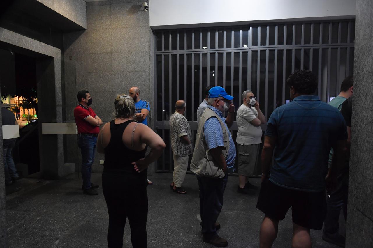 في مشهد يُضاف إلى مشاهد الذلّ في لبنان، اصطفّ المواطنون، في ساعات متأخّرة من مساء اليوم، أمام الصرافات الآلية، في محاولة لسحب ما تيسّر لهم من أموالهم بعد بيان مصرف لبنان حول تعليق العمل بالقرار الذي يسمح للمودعين بسحب أموالهم من حساباتهم بالدولار على سعر صرف 3900 ليرة لبنانية للدولار، وفقاً لتبلّغه القرار الاعدادي لمجلس شورى الدولة حول تعليق العمل بالتعميم رقم 151.