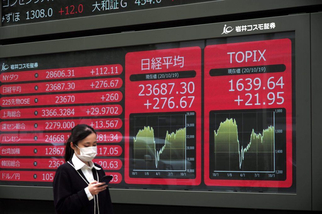 لوحة تعرض مؤشرات الأسهم اليابانية (أ ف ب).