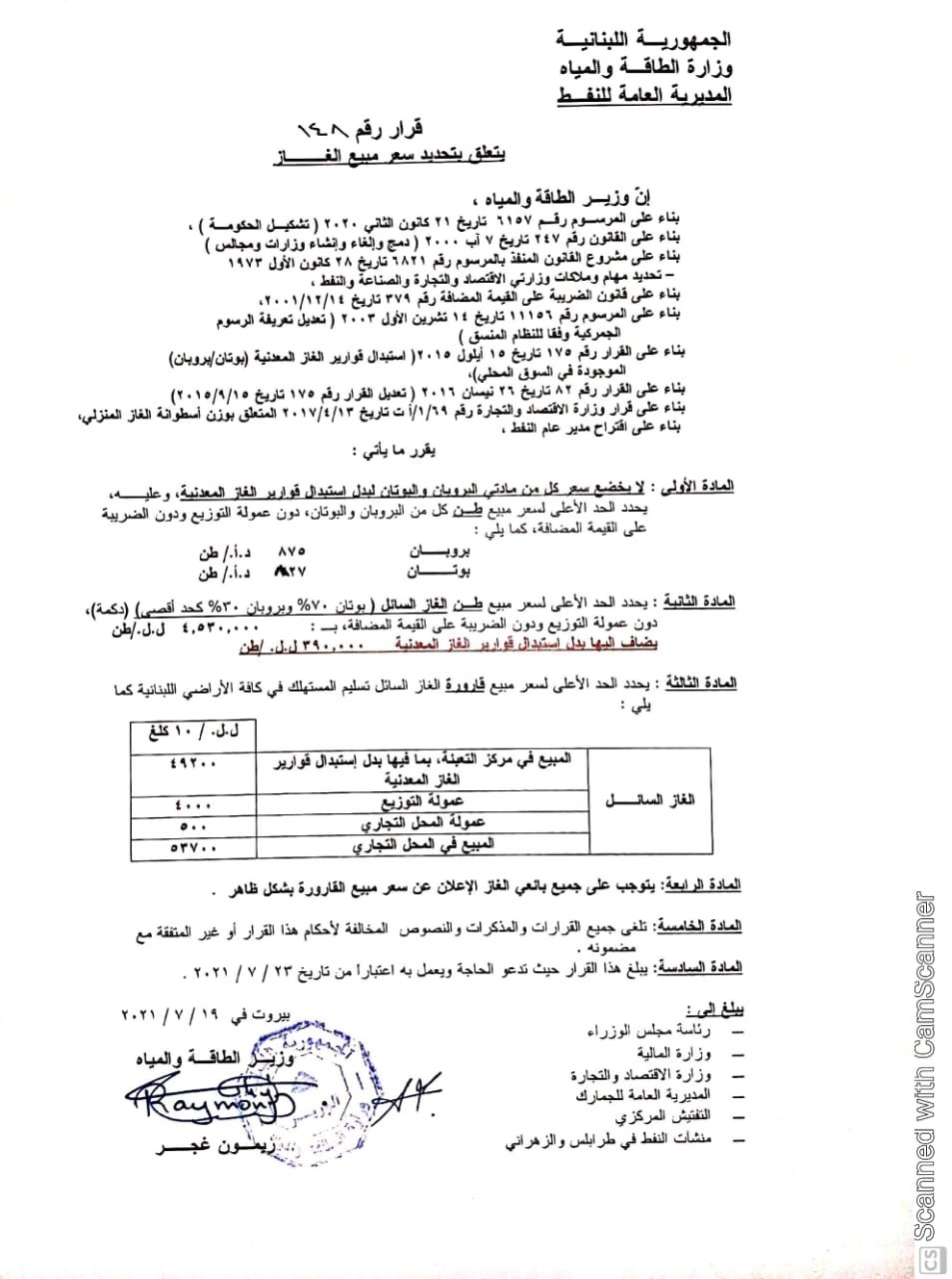 - قارورة الغاز: 53700 ليرة.