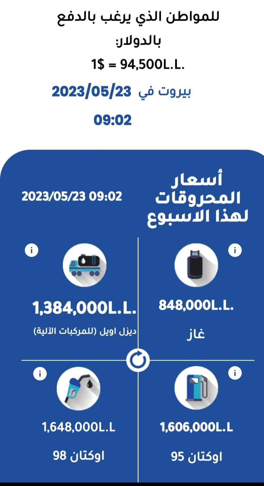 صدر جدول جديد لأسعار المحروقات اليوم وأصبحت الأسعار على الشكل التالي: