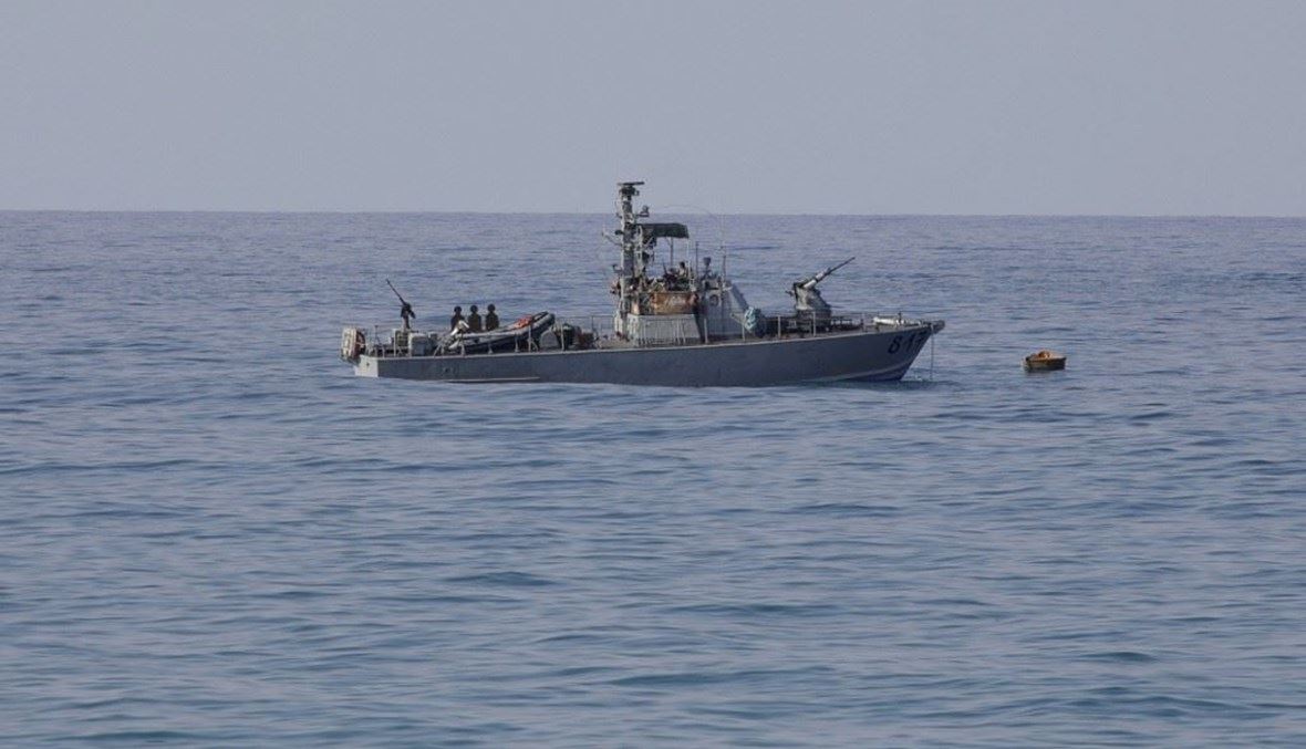 سفينة إسرائيلية في المياه الدولية بين لبنان وفلسطين المحتلة (أ ف ب ).