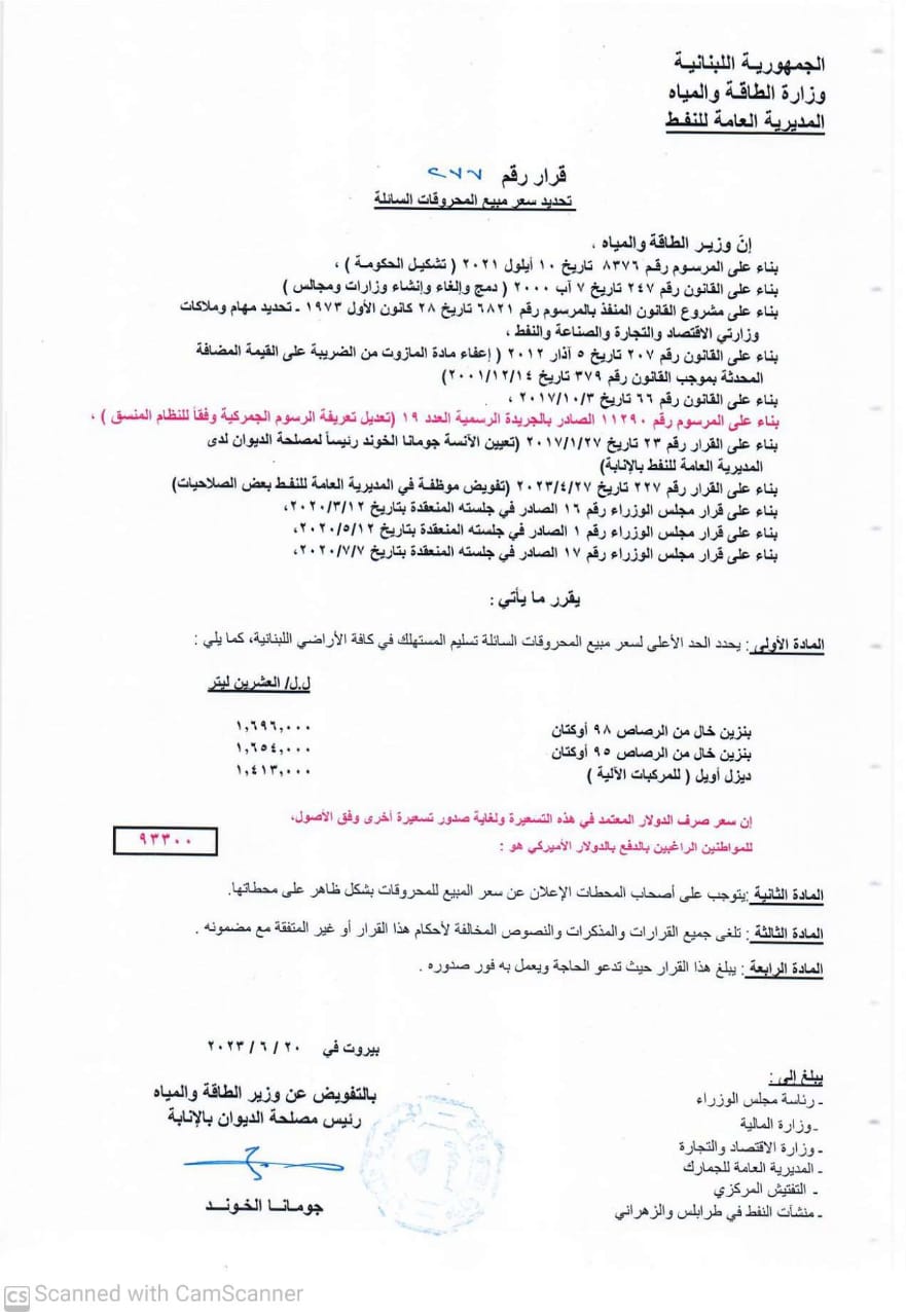 صدر جدول جديد لأسعار المحروقات صباح اليوم ولحظ تغيُّراً بالأسعار على الشكل التالي: