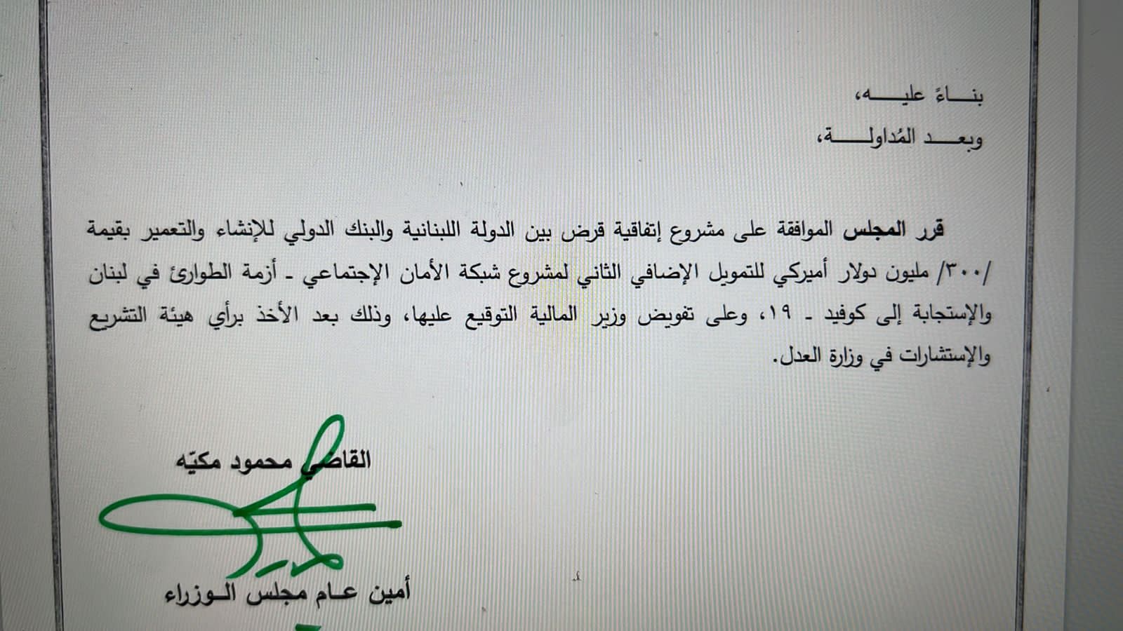 أوضح المكتب الإعلامي لوزير الشؤون الاجتماعية في حكومة تصريف الأعمال هكتور حجّار، في بيان حول برنامج "أمان"، أنّه "في إطار العمل الذي قامت به وزارة الشؤون الاجتماعيّة من أجل الحصول على تمويل إضافي لبرنامج أمان من البنك الدولي، ونجحت بالحصول على 300 مليون دولار، وبعد موافقة كلّ من وزارة الخارجية والمغتربين، وزارة المال ورأي هيئة التشريع والاستشارات في وزارة العدل، وافق مجلس الوزراء في جلسته أمس على مشروع اتفاقيّة القرض بين الدولة اللبنانيّة والبنك الدولي. وعليه، تبقى المحطّة الأخيرة في مجلس النواب للحصول على موافقته على الاتفاقيّة، قبل البدء بالتنفيذ وتحويل الأموال إلى مصرف لبنان للتمكّن من استكمال دفع المساعدات".