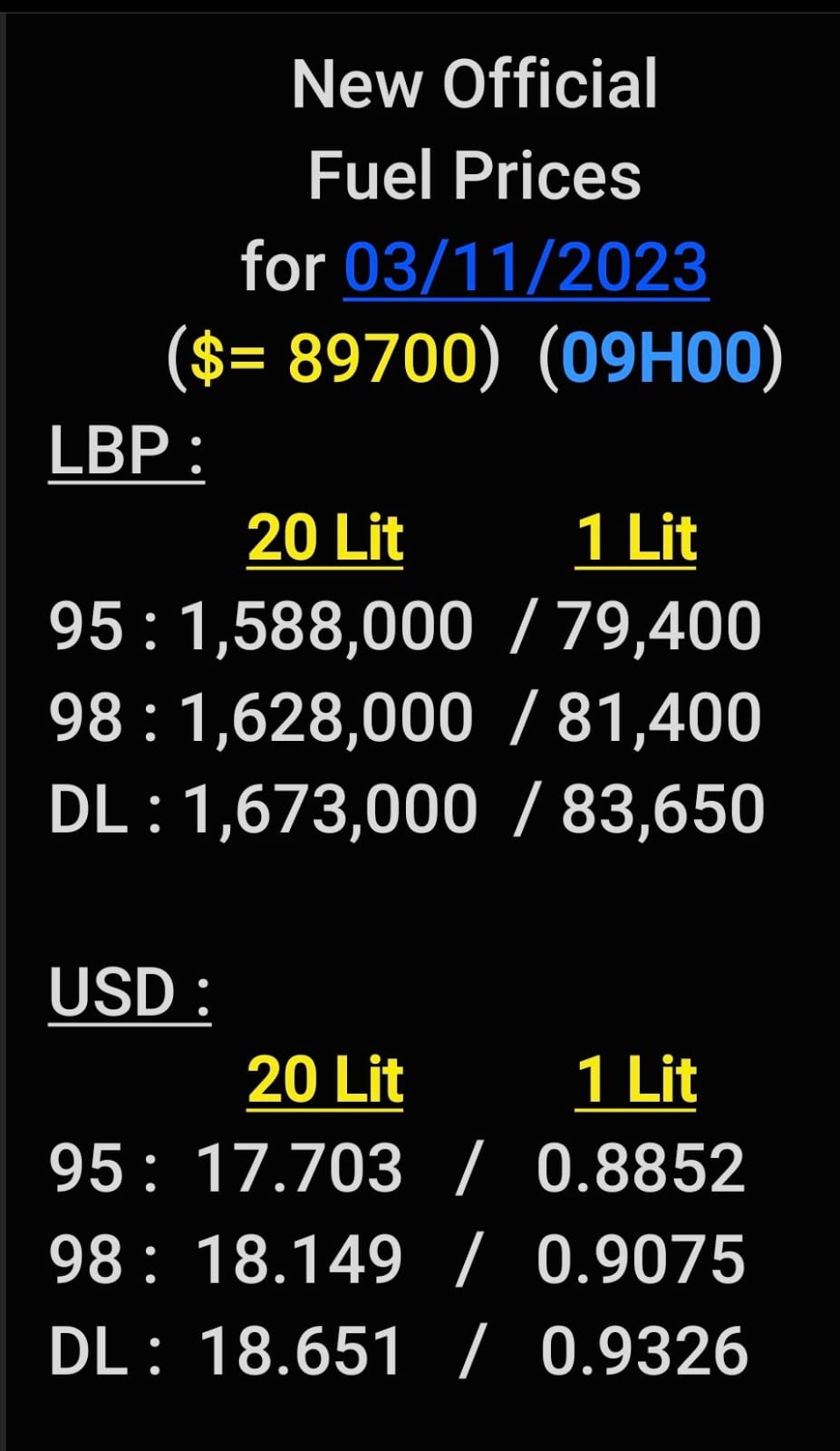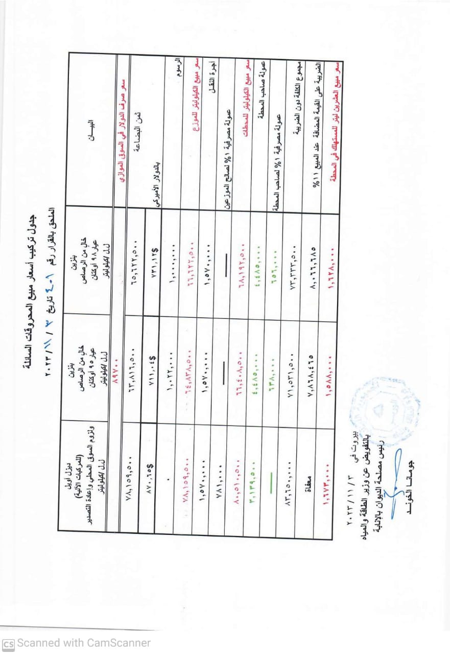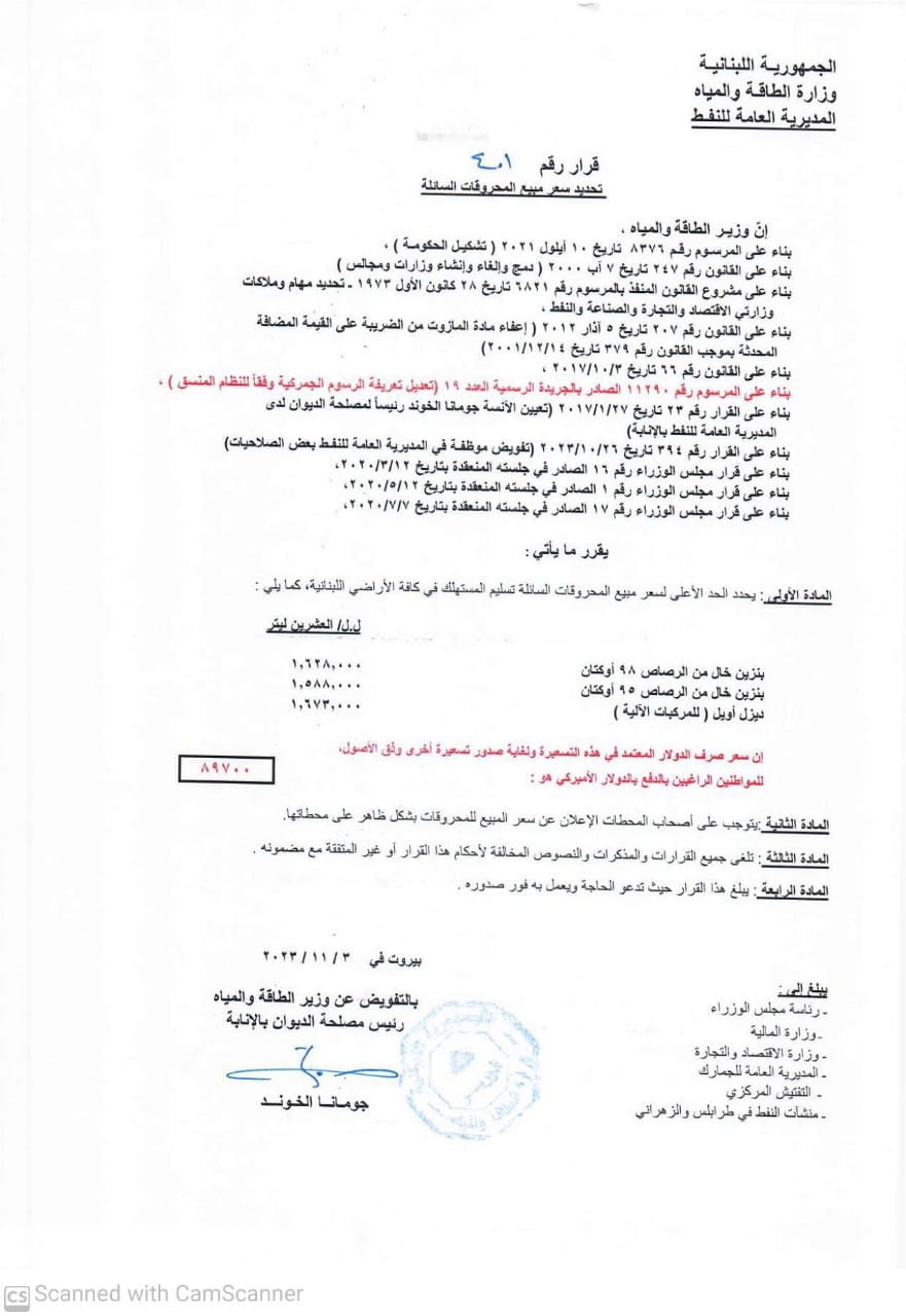 أصدرت مديرية النفط في وزارة الطاقة والمياه تسعيرة جديدة للمحروقات، جاءت على الشكل التالي: