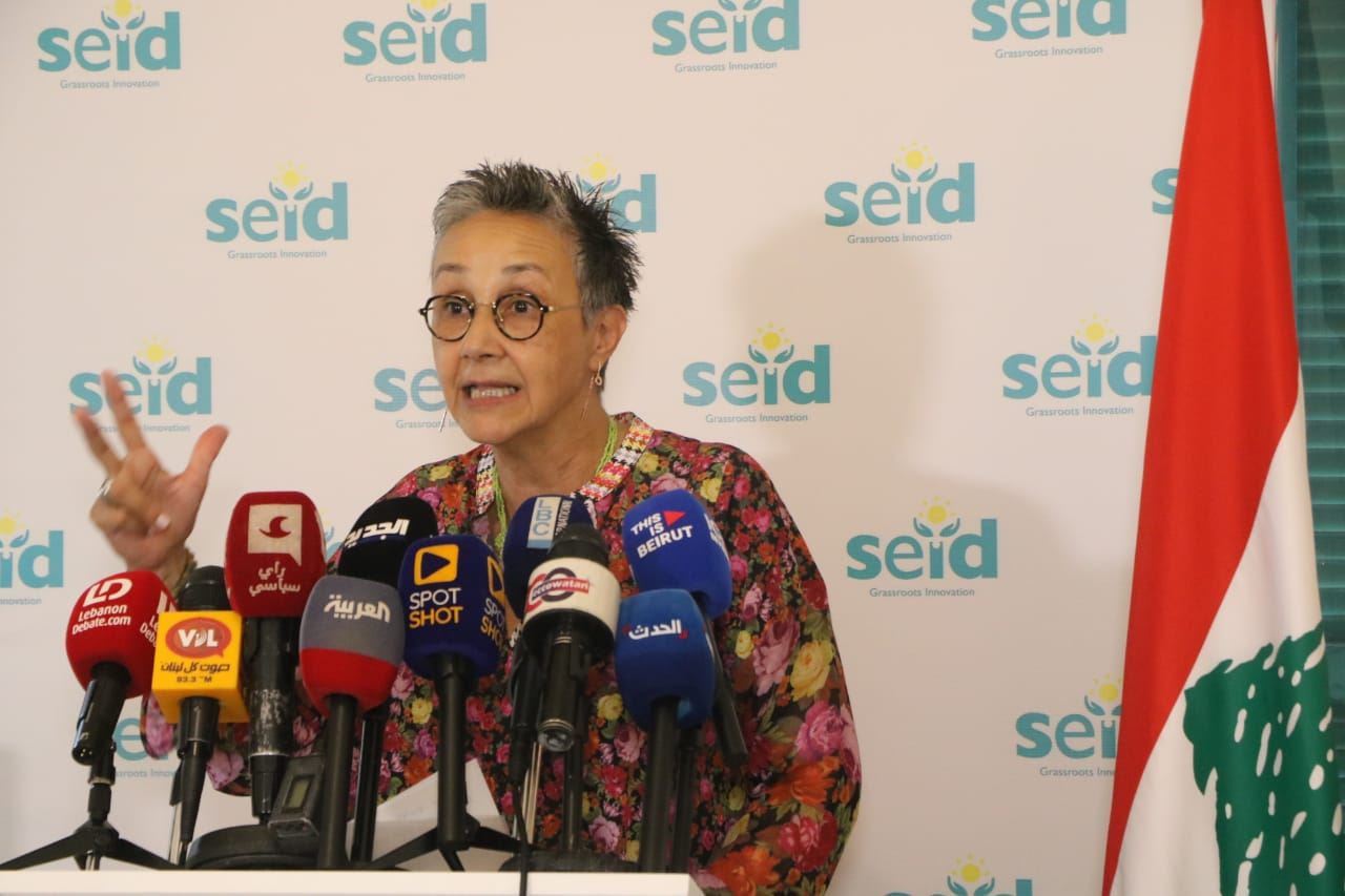 النائبة نجاة عون صليبا خلال المؤتمر الصحافي (حسن عسل).