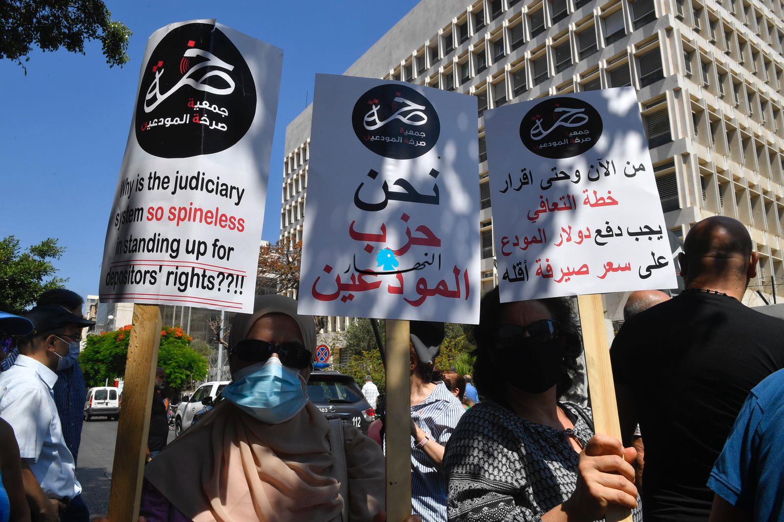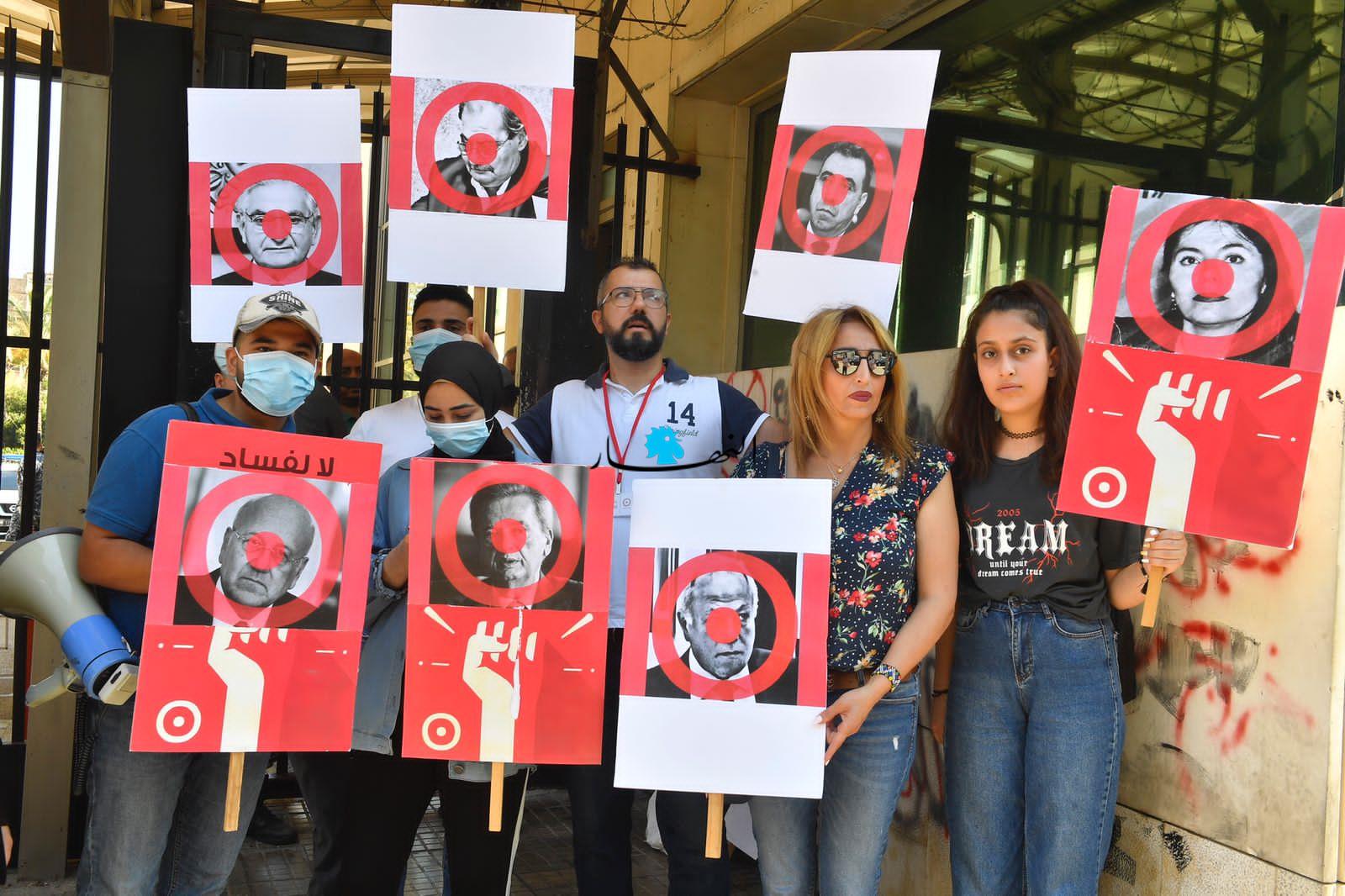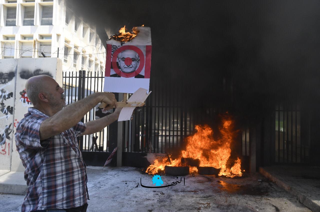 وعمد المحتجّون إلى إحراق الإطارات وقطع الطريق وسط انتشار كثيف لعناصر القوى الأمنية.ورفع المشاركون لافتات عدّة كُتب عليها "نحن حزب المودعين" و "حرامية الودائع".