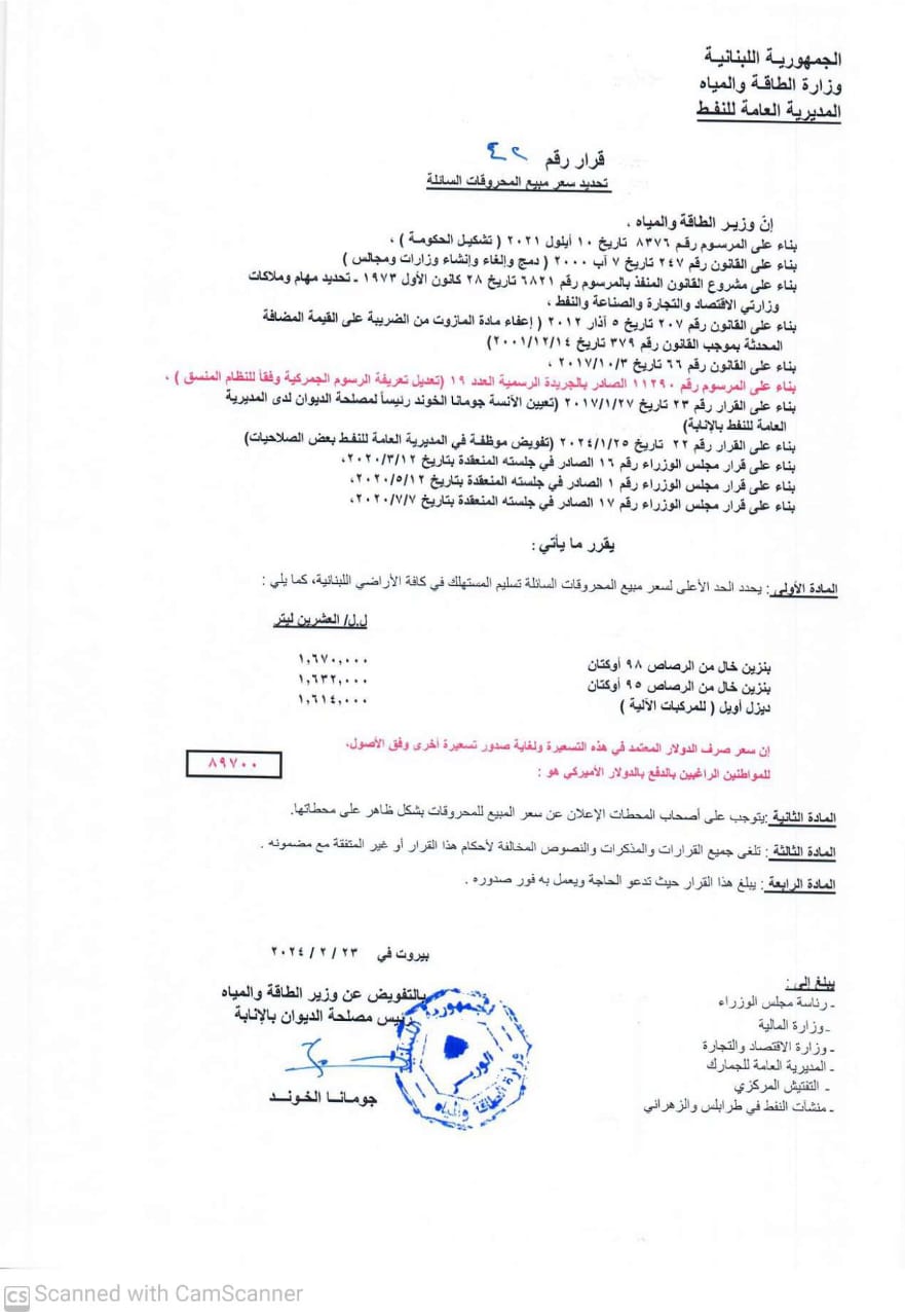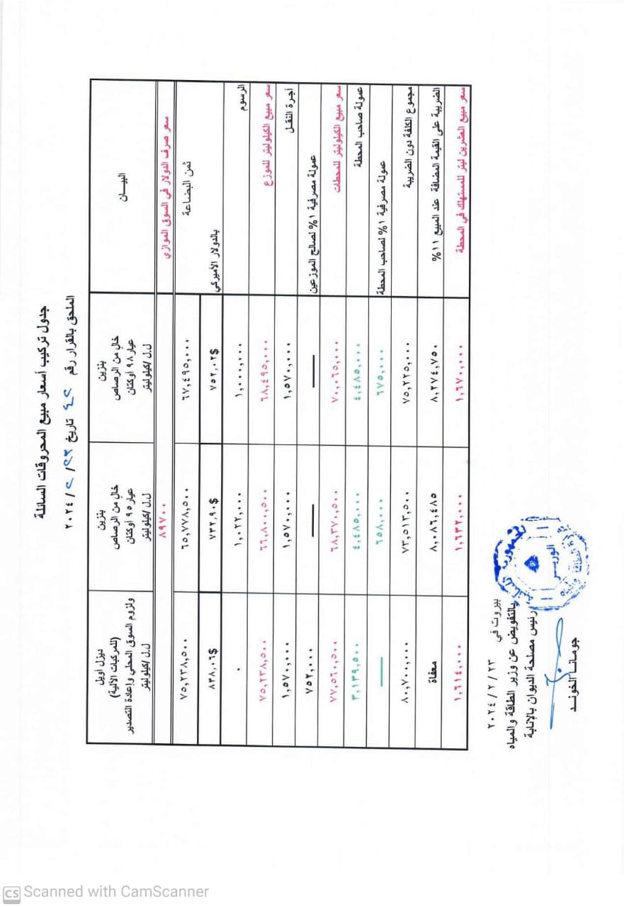 أصدرت مديرية النفط في وزارة الطاقة جدول أسعار جديد، جاء على الشكل التالي: